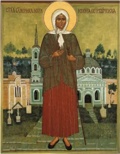 Blessed Xenia, our patient and wise mother, you had no home or wealth in this world for you transcended all vanity and acquired the enlightenment of the Holy Spirit. You gave everything, materially and spiritually, to the poor. Since we are poor in every way, we call on you to direct us to the Lord Jesus Christ Who blessed your ascetic path with abundant wonders. You were regarded a homeless fool by the world, but you were a meek helper to the unfortunate and a builder of the Holy Church. Blessed mother, we implore your sympathy for our feeble resolve and our bitter troubles, for our daily tasks and our family relationships, and for our disabilities and our frailties. Have compassion upon us and spare us from sinister temptation and evil gloom. We request your kindness, and we thank you for your intercession. Amen.