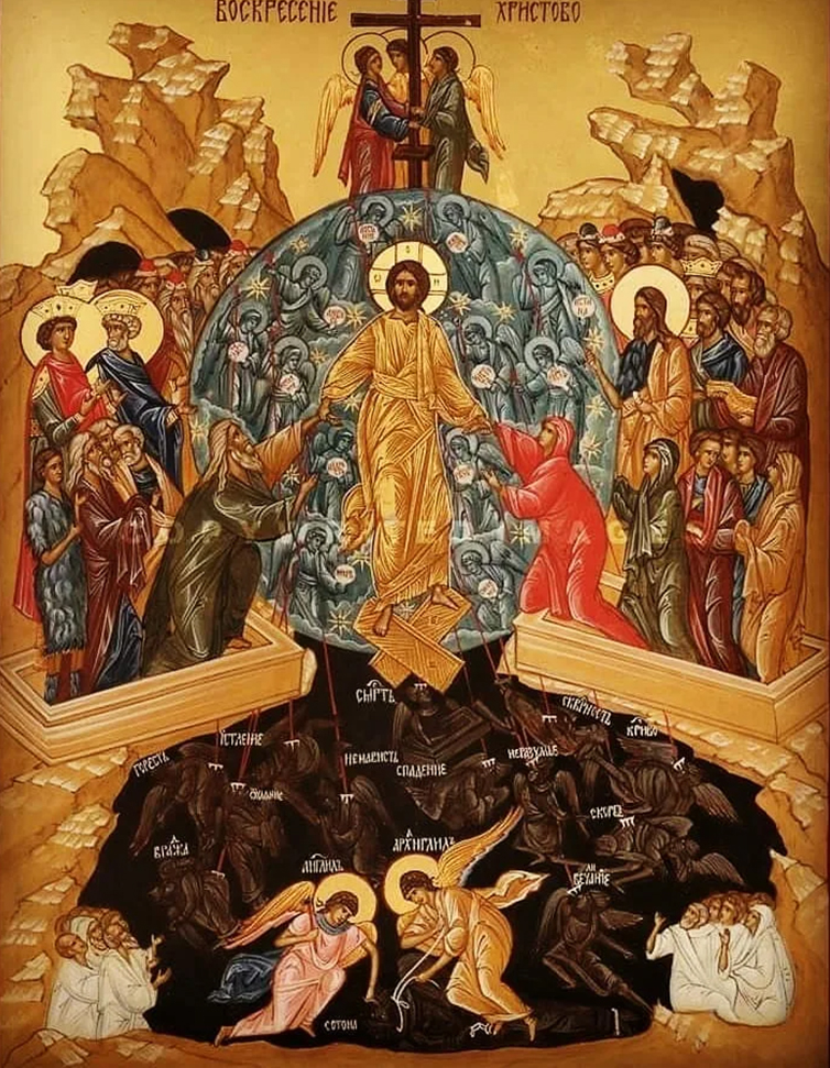 Добавим, что с победой Христа изменились и некоторые условия пребывания грешников в аду: по крайней мере, многие из нынешних обитателей ада получают отраду благодаря молитвам за них со стороны ближних; часть грешников, по молитвам Церкви, имеет возможность обрести прощение и наследовать Царство Божье. Именно в этом смысле и следует понимать слова автора слова на Святую Пасху.