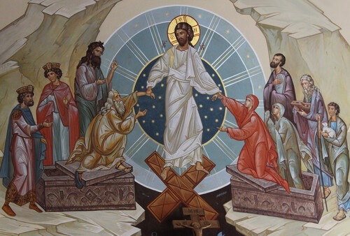 Текст составлен на основе Священного Писания (1 Кор. 15:45), святоотеческих толкований (свт. Николай Сербский, свт. Григорий Палама, прп. Максим Исповедник) и православного учения о Новом Адаме как победителе греха и смерти.