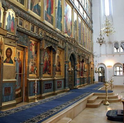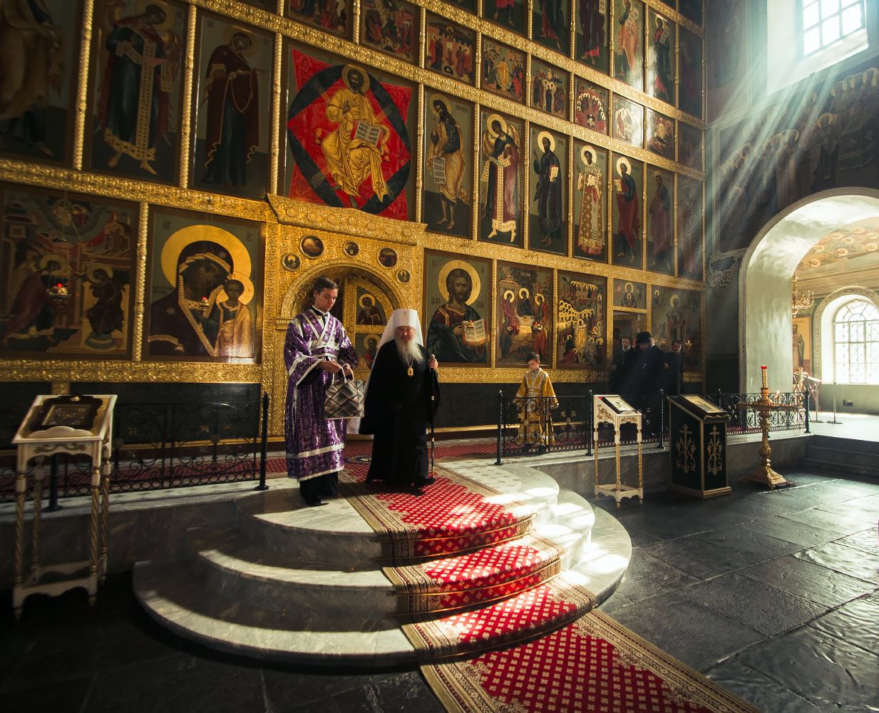 Архиерейским амвоном называется четырехугольное возвышение в центре храма, на которое во время богослужения ставится архиерейская кафедра.