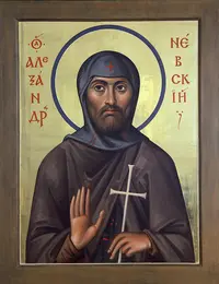 Припев: Святы́й благове́рный вели́кий кня́же Алекса́ндре, моли́ Бо́га о на́с.