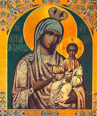 Грузинская царица святая Тамара, жившая в конце XII – начале XIII века, способствовала распространению на Кавказе христианства, воздвигала и снабжала утварью и облачениями множество храмов в горах и ущельях. В один из таких храмов, находившихся около осетинского аула Марьям-Kay, она и прислала список с афонской Иверской иконы Божией Матери в дар новопросвещенным христианам. Написана эта икона была благочестивым человеком, который перед тем, как начать работу, постился шесть недель. До 1768 года эта икона Богоматери хранилась в Куртатинском округе. Здесь она три раза чудесным образом выходила невредимой из пожаров. В том же году по настоянию императрицы Екатерины II осетины аула Марьям-Kay должны были выселиться из Куртатинского округа. Отправившись в дорогу и взяв с собой Иверскую икону, путники-осетины заночевали на берегу р. Терек у города Моздока. Всю ночь от святой иконы исходил яркий свет, освещая всю окрестность, а утром, когда переселенцы хотели продолжить свой путь, волы, запряженные в арбу, на которой помещалась Иверская икона, не смогли сдвинуться с места. Одному из путников было во сне видение: Богородица приказала оставить икону на этом месте. Весть об этом дошла до архиерея Гаия, которым был совершен торжественный молебен у иконы. Архиерей хотел было перенести икону в городской собор, но ему тоже было открыто, что святой образ должен оставаться на том же месте. Епископ внял этому небесному внушению и построил здесь для Иверской иконы часовню, на месте которой в 1796–1797 годах был выстроен храм во имя Успения Богоматери, здесь же вскоре была основана женская обитель. Но в 1799 году и храм, и монастырь были закрыты, как была упразднена и сама Моздокская епархия. По преданию, когда предводитель кавказских горцев Шамиль подходил со своим войском к Моздоку, чтобы овладеть им, ему явилась в видении Жена в белом одеянии и приказала не трогать город. В конце XIX столетия в честь Иверской иконы Божией Матери жителями Моздока был выстроен величественный храм. Но не только моздокские жители считали эту икону своей покровительницей – она почиталась по всему Кавказу; и не одни лишь православные, но и католики, населявшие Кавказ, служили ей молебны и ставили пред ней свечи. От Иверской Моздокской иконы совершилось много чудес и исцелений. Часто по обету богомольцы приходили к ней издалека босиком и несколько раз обходили вокруг собора на коленях. Каждый год ее переносили в г. Владикавказ, где она пребывала около месяца. К великому сожалению, после революции 1917 года икона была утеряна и сегодня в Успенской церкви города Моздока находится ее список. | |