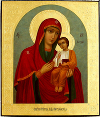 Образ Божией Матери, именуемый Песчанским, известен как один из чудотворных списков Казанской иконы Пресвятой Богородицы. Образ был явлен великому русскому святителю Иоасафу, епископу Белгородскому. В 1754 году, незадолго до своей кончины, святитель увидел во сне, будто он в одной из осматриваемых им церквей в притворе на куче мусора нашел икону Богоматери с Младенцем, от которой исходило сияние. Тут же он услышал: «Смотри, что сделали с ликом Моим служители сего храма. Образ Мой назначен для страны сей источником благодати, а они повергли его в сор». Каково же было изумление епископа, когда он обнаружил увиденную во сне икону в Воскресенской церкви в г. Изюме Харьковской губернии. Образ служил в притворе перегородкой, за которую ссыпали уголь для кадила. По святительскому повелению икона была помещена в большой киот и поставлена в подходящее для нее место. Более трех дней прожил святитель Иоасаф в Изюме, и каждое утро и вечер приходил он в Воскресенскую церковь и молился перед образом Божией Матери. В 1792 году Воскресенская церковь вместе с находящейся там иконой была перенесена из замостья (городское предместье) в более высокую местность – на Пески. Слух о чудесном явлении святого образа быстро распространился среди верующих. К чудотворной иконе стали стекаться толпы богомольцев, переполняя не только церковь, но и прилегающую к храму территорию, так что священник не успевал служить молебны. Многочисленные чудотворения и исцеления совершались по усердным молитвам у Песчанского чудотворного образа Матери Божией и в XIX веке. Так, в 1830 году после молебна и крестного хода с Песчанской иконой была остановлена эпидемия холеры в г. Изюме и его окрестностях. После страшных событий первой мировой войны и октябрьского переворота 1917 года чудотворный Песчанский образ был переправлен за рубеж и следы его затерялись. В настоящее время существует несколько списков чудотворной иконы, которые находятся в разных концах света. Так, один из списков находится в Санкт-Петербурге в часовне святителя Иоасафа Белгородского при детской больнице, где еженедельно совершаются молебны с акафистом святителю Иоасафу и Песчанской иконе Божией Матери. В России также известен так называемый крестоходный список Песчанской иконы, который считается всероссийской святыней, так как он по благословению правящих архиереев побывал уже более чем в двадцати пяти епархиях Русской Православной Церкви. По словам хранительницы чудотворного списка, Татьяны Дубининой, «от Песчанской иконы Божией Матери (крестоходной) нескончаемым потоком изливается благодать. Невозможно описать всех исцелений и проявлений благодатной помощи, так как их огромное количество...» Наглядным свидетельством чудотворности иконы является обилие даров: золотые и серебряные украшения тесно нанизаны на несколько нитей. Их пожертвовали многочисленные верующие, получившие через этот образ милосердную помощь Царицы Небесной. | |
