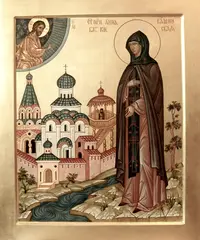Память: 25 (12) июня, 15 (2) октября Глас 3. Припев: Свята́я преподо́бная ма́ти А́нно, моли́ Бо́га о на́с. |