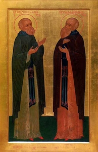 Память: 16 (3) мая, 27 (14) августа, 15 (2) сентября, 23 (10) июля, Глас 4. Припев: Преподо́бнии отцы́ Анто́ние и Феодо́сие, моли́те Бо́га о на́с |
