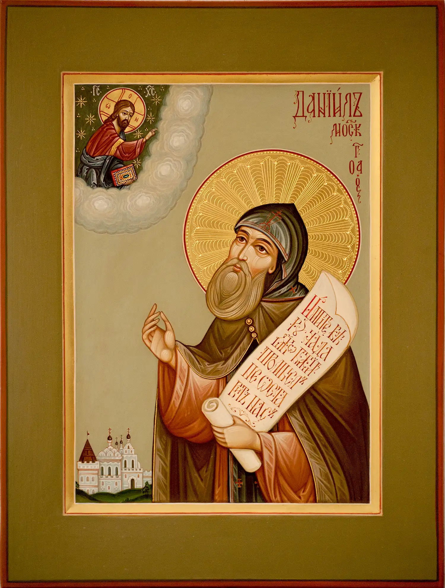 Память: 17 (4) марта, 12 сентября (30 августа) Глас 5. Припев: Святы́й благове́рный кня́же Дании́ле, моли́ Бо́га о на́с. |