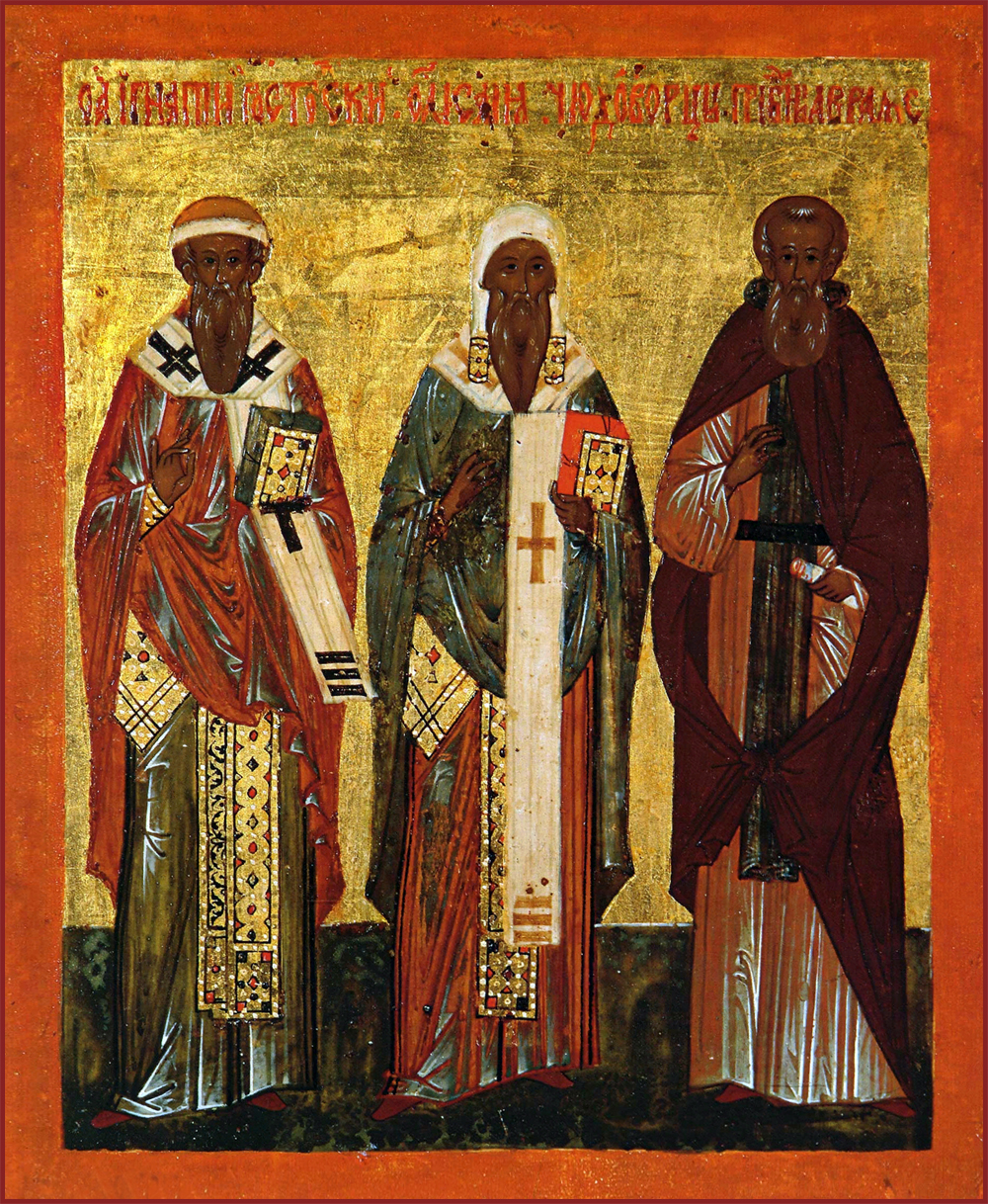 Пе́снь 7. Ирмо́с: Росода́тельну у́бо пе́щь соде́ла А́нгел преподо́бным отроко́м, халде́и же опаля́ющее веле́ние Бо́жие мучи́теля увеща́ вопи́ти: благослове́н еси́, Бо́же оте́ц на́ших. Трие́ вели́цыи святи́телие, на Небесе́х пребыва́юще, ра́дуетеся, на земли́ же ва́ша честны́я мо́щи приходя́щим подаю́т исцеле́ния, те́мже мо́лим: спаси́те ду́ши пою́щих ва́с, я́ко благослове́н Бо́г и препросла́влен во ве́ки. Иму́ще дерзнове́ние ко Христу́ Бо́гу, святи́и чудотво́рцы Росто́встии, три́ вели́цыи свети́льницы – Лео́нтие, и Иса́ие, и Игна́тие, моли́теся за правосла́вныя лю́ди, е́же спасти́ся непреста́нно ве́рою и любо́вию чту́щим и пою́щим вы́: благослове́н Бо́г оте́ц на́ших. Святи́тели прему́дрыя вси́ в пе́снех, ве́рнии, восхва́лим, глаго́люще: Богоно́снии и святи́и отцы́ и пресла́внии чудотво́рцы Лео́нтие, и Иса́ие, и Игна́тие, приле́жно моли́те спасти́ся на́м, вопию́щим и благословя́щим Бо́га оте́ц на́ших. Богоро́дичен: И́же на́с ра́ди Рожде́йся от Де́вы Чи́стыя Богоро́дицы Мари́и да моли́твами Ея́ ми́р от истле́ния и врага́ изба́вит, взыва́ющих: благослове́н Бо́г оте́ц на́ших.