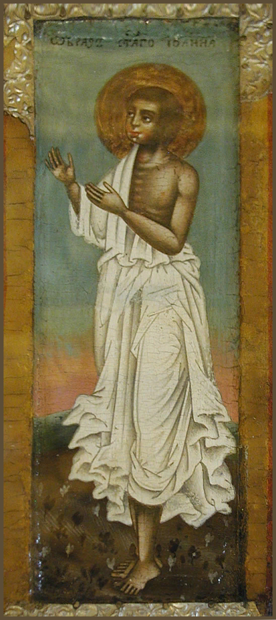 Свети́лен: Сове́та удали́лся еси́, бе́гая, нечести́вых сожи́тельства, Христу́ же, над все́ми Бо́гу на́шему, непоро́чным житие́м угоди́л еси́, Иоа́нне, Его́же ны́не моли́ о на́с, рабе́х твои́х, ве́рою пра́зднующих всечестну́ю па́мять твою́, Богому́дре Иоа́нне. Богоро́дичен: Му́дрость Ипоста́сную, и Сло́во Пресу́щное, и Врача́ все́х поро́ждши, Де́во, стру́пы и я́звы души́ моея́ исцели́, лю́тыя и многовре́менныя, и уста́ви се́рдца моего́ страстна́я помышле́ния. | |