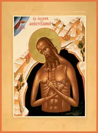 Свети́лен: Чистоты́ ра́ди своея́ ско́рбную ше́ствуя стезю́, се́ял еси́ мно́гия сле́зы; ны́не же с весе́лием жня́й блаже́нныя рукоя́ти, моли́ся о на́с, преподо́бне, со святы́ми отцы́, да и мы́ прича́стницы ва́шего блаже́нства бу́дем: мы́ бо ча́да ва́ша и о́вцы слове́сныя уче́ний ва́ших. Богоро́дичен: Чи́стая Де́во, Сло́ва врата́, Ма́ти Христа́ Бо́га на́шего, моли́ спасти́ся на́м, рабо́м Твои́м. | |
