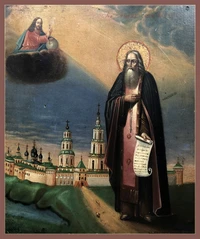 Седа́лен, гла́с 8: Храни́тель сы́й Боже́ственных повеле́ний Влады́ки, сла́вне, чи́стое житие́ твое́ показа́ тя́ священноде́теля боже́ственна, ка́плями по́тов твои́х пре́лести лю́тое у́глие погаси́л еси́ и в ти́хое приста́нище дости́гл еси́, зри́ши, блаже́нне, Его́же возжеле́л еси́. Те́мже вопие́м ти́: моли́ Христа́ Бо́га грехо́в оставле́ние пода́ти, чту́щим любо́вию святу́ю па́мять твою́. Богоро́дичен: Я́ко де́ву и еди́ну в жена́х, Тя́, без се́мене ро́ждшую Бо́га пло́тию, вси́ ублажа́ем, ро́ди челове́честии: о́гнь бо всели́ся в Тя́ Божества́, и я́ко Младе́нца дои́ши Зижди́теля и Го́спода. Те́м, а́нгельский и челове́ческий ро́д, досто́йно сла́вим пресвято́е Рождество́ Твое́ и согла́сно вопие́м Ти́: моли́ Христа́ Бо́га согреше́ний оставле́ние дарова́ти покланя́ющимся ве́рою пресвято́му Рождеству́ Твоему́.