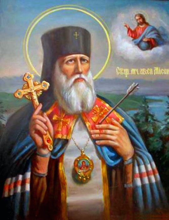Свети́лен: Сла́внаго священному́ченика Мисаи́ла пе́сньми восхва́лим, я́ко ду́шу свою́ за лю́ди положи́вшаго и све́том ве́ры Христо́вы и́х просвети́вшаго. Богоро́дичен: Пресвята́я Влады́чице, просвети́ на́с Све́том Сы́на Твоего́ и спаси́ ду́ши на́ша. | |