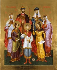 Свети́лен: Невече́рнему Све́ту предстоя́ще, страстоте́рпцы святи́и ца́рственнии, с му́ченическими ли́ки, во испыта́ниих не оставля́йте ны́ моли́твами ва́шими. Сла́ва, и ны́не: Ро́ждшая Све́т Незаходи́мый, просвеща́ющий седя́щих во тьме́ неве́дения и пре́лести, озари́ и на́с, гре́шных, све́том Сы́на Твоего́. | |
