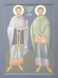 | Память: 14 (1) ноября, Глас 6. Припев: Святи́и безсре́бреницы Космó и Дамиáне, моли́те Бо́га о на́с. |
