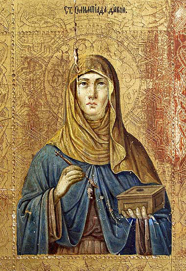 Память: 7 августа (25 июля), 7 августа (25 июля) Глас 8. Припев: Святи́и пра́веднии де́вы Олимпиа́до и Евпракси́е, моли́те Бо́га о на́с. |