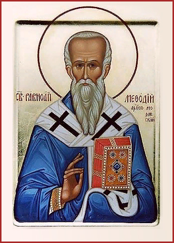 Память: 27 (14) февраля, 24 (11) мая, 19 (6) апреля, 24 (11) мая Глас 8. Припев: Святы́е равноапо́стольные отцы́ на́ши Кири́лле и Мефо́дие, моли́те Бо́га о на́с. |