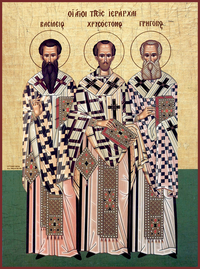 Память: 12 февраля (30 января) Глас 2. Припев: Святи́телие Васи́лие Вели́кий, Григóрие Богослóве, Иоáнне Златоýсте, моли́те Бо́га о на́с. |