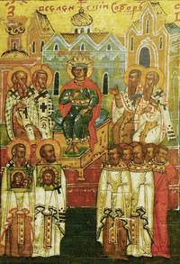 Память: 12 февраля (30 января) Глас 8. Припев: Святи́телие Васи́лие Вели́кий, Григóрие Богослóве, Иоáнне Златоýсте, моли́те Бо́га о на́с. |
