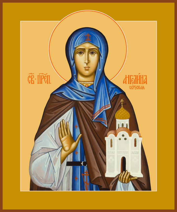 Свети́лен. Вы́шняго Иерусали́ма жела́ющи, вся́ умо́м изступи́вши к Небе́сным, и бога́тство твое́ расточи́ла еси́ ни́щим, Христу́ после́дствующи. Те́мже Го́рняго Сио́на красоты́ наслажда́ешися, отону́дуже и на́с назира́еши при́сно. Сла́ва: Ангели́ну святу́ю в пе́снех восхва́лим любо́вию, я́ко низложи́ по́стничеством злоде́йствия вра́жия и, сла́ву свы́ше прие́мши, спаса́ет, и́же ту́ю чту́щия ве́рно. И ны́не: Светови́днейшая Отрокови́це и златоза́рный све́щниче, кади́льнице Боже́ственная, Благослове́нная Мари́е, изба́ви от бе́д, Деви́це, восхваля́ющих Тя́ ве́рно. | |