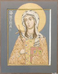Свети́лен. Равноапо́стольная пропове́днице и благове́стнице Христо́ва, от наве́т вра́жиих избавля́ющая ны́! А́ще и в не́дрех земли́ сокрове́на еси́ от о́чию на́шею, оба́че жива́ пребыва́еши у престо́ла Христа́ Бо́га на́шего. Бу́ди у́бо засту́пница усе́рдно чту́щим тя́.