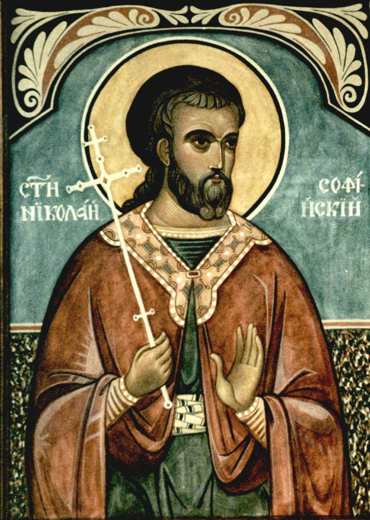 Седа́лен, гла́с 8. Прему́дростию па́че слове́с, от не́мощи в си́лу по Бо́зе дерзнове́нием к дея́нию себе́ возве́л еси́; к виде́нию же восте́к Боже́ственных позна́ний и высоту́ дости́г соверше́ннаго богосло́вия тве́рдаго ка́мене ве́ры, мглы́ грехо́вныя а́бие от души́ прогна́л еси́ и дерзну́л еси́ к супоста́том, и́же ка́мением ри́зу души́ твоея́ испра́ша и подо́бника тя́ Влады́це твоему́ показа́ша, от Едо́ма восходя́щу оброщвле́нну оде́ждею и червле́ну от Восо́ра. Те́мже кро́вию восхо́д получи́л еси́ Ца́рствия Бо́жия и неизрече́нная восприя́л еси́ блага́я, страстоте́рпче Нико́лае, моли́ Христа́ Бо́га грехо́в оставле́ние дарова́ти чту́щим любо́вию честну́ю па́мять твою́. Богоро́дичен: Прему́дрость и О́тчее Сло́во в Тебе́ непреме́нно воплоти́ся во обои́х существа́х кра́йним смотре́нием и воста́ви естество́, па́дшее преступле́нием, многосмра́дныя скве́рны ми́р свободи́в. Того́ моли́ со дерзнове́нием, Ма́ти Чи́стая, дарова́ти безме́стным дея́нием исправле́ние и ту́нею бла́гостию грехо́м оставле́ние. Ми́лостива бо еси́ Тя́ пою́щим и вско́ре отвраща́еши сугу́бых враго́в наве́ты. Те́мже потщи́ся от всего́ се́рдца Тебе́ вопию́щим, согреше́ний проще́ние да́рующи, Тя́ бо и́мамы наде́жду, раби́ Твои́.