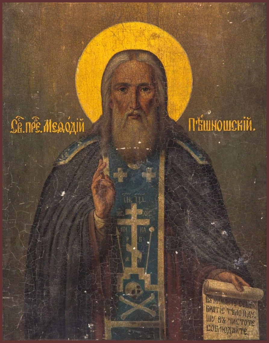 Память: 17 (4) июня, 27 (14) июня Глас 8. Припев: Преподо́бне о́тче Мефо́дие, моли́ Бо́га о на́с.