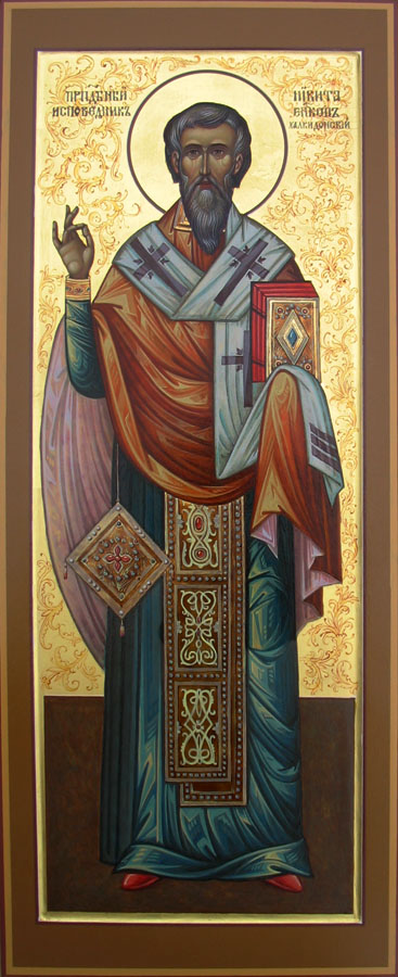 Конда́к, гла́с 8. Све́тлостию де́л твои́х просия́л еси́, преподо́бне, апо́стольскаго престо́ла насле́дник бы́л еси́, Ники́то, и, я́ко со́лнце, облиста́л еси́ твое́й па́стве, о́тче, вся́ Боже́ственных уче́ний испо́лнь. Те́мже зове́м ти́: ра́дуйся, Халкидо́ну удобре́ние.