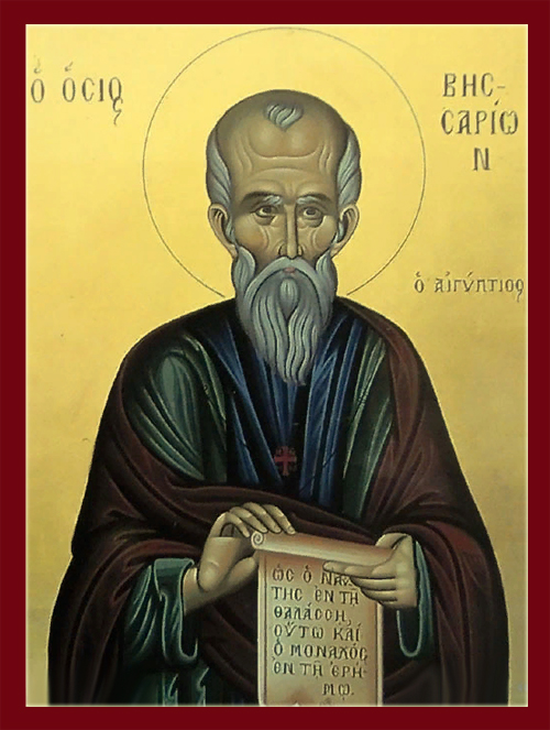 Конда́к, гла́с 2. Вы́шних си́л подража́в, преподо́бне, о́бразом пти́ц житие́ пожи́л еси́, вре́менная в забы́тии положи́в, непреста́нным жела́нием влеко́м к небе́сным добро́там Христа́ Царя́, до́ндеже Того́ дости́гл еси́, Виссарио́не, моли́ непреста́нно о все́х на́с.