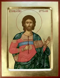 Пе́снь 4. Ирмо́с: Прише́л еси́ от Де́вы не хода́тай, ни а́нгел, но Са́м Го́споди вопло́щся, и спа́сл еси́ всего́ мя́ челове́ка; те́м зову́ ти́: сла́ва си́ле Твое́й, Го́споди. Уподо́бився Распя́тому на дре́ве во́лею, возвы́сился еси́, протяза́емь и суро́вейше стру́жемь, совлача́яся ко́жных ри́з умерщвле́ния. Боле́зни твоя́ плотски́я и лю́тых просте́ртие неболе́зненный поко́й, му́чениче, я́ве тебе́ исхода́таиша, его́же ны́не насыща́яся, вся́ку боле́знь облегча́еши от ду́ш на́ших. Равноа́нгельну бы́вшу тебе́ страда́ний све́тлостьми, руко́ю а́нгеловою посыла́ет тебе́ пи́щу, небе́сный Хле́б, Жи́знь на́ша, укрепля́ющую тя́, му́чениче достосла́вне. Бога́тыми тя́ украси́ благода́ть Ду́ха дарова́нии, всему́дре, те́м вся́ческия неду́ги, му́чениче всече́стне, отго́ниши, ве́рою прибега́ющих ти́. Богоро́дичен: Де́ву Тя́ по рождестве́, Нескве́рная, нетле́нну Христо́с соблюде́, благоволи́вый во утро́бе Твое́й, всего́ мя́ челове́ка восприя́ти, кра́йнею бла́гостию.