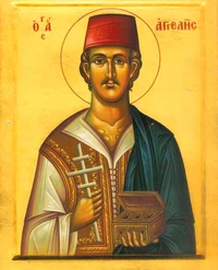 Глас 1. Припев: Святы́й великому́чениче Ангели́, моли́ Бо́га о на́с.