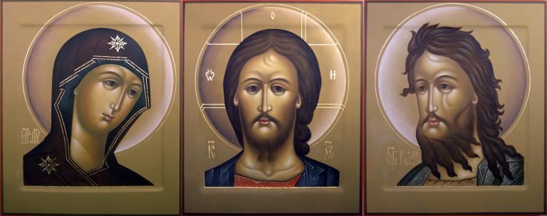 Деисусный чин Деисус — (от греческого деисес — моление святых за человеческий род) каноническая композиция иконописи, включающая Христа (в центре) и обращенных к нему в молитвенных позах Богоматерь и Иоанна Крестителя (обязательные персонажи).
