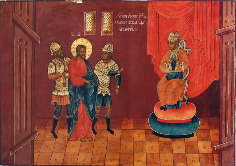 Христос перед Каиафой Связанного Спасителя ввели в дом первосвященников, который находился в Сионе, богатом районе верхнего Иерусалима. (Сион — местность на юго-запад от храма, где некогда стоял дворец царя Давида. Во времена Спасителя в Сионе жили иудейские начальники и знать.…
